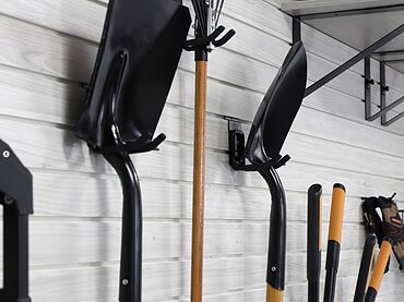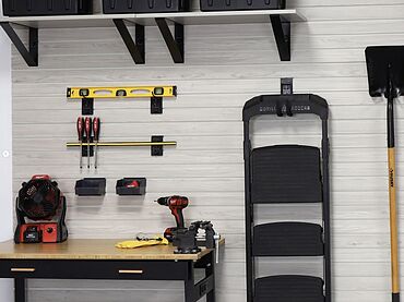 Elite Series accessories are selected as part of your Garagezilla design—no guesswork. We recommend a bundle that covers the majority of storage needs, based on how much wall you install, then you choose one option.