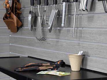 Elite Series is our premium, design-forward slatwall system—built for homeowners who want a more custom “built-in” look. It elevates the entire garage with laminated finishes and a clean, architectural appearance, while still delivering the flexible storage performance slatwall is known for.