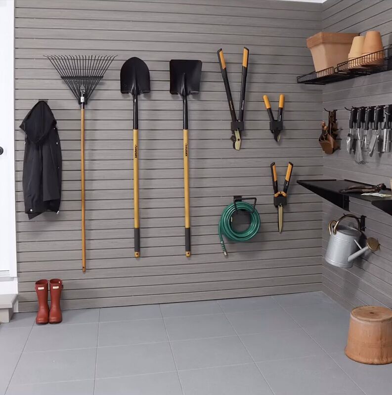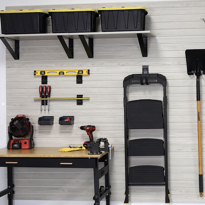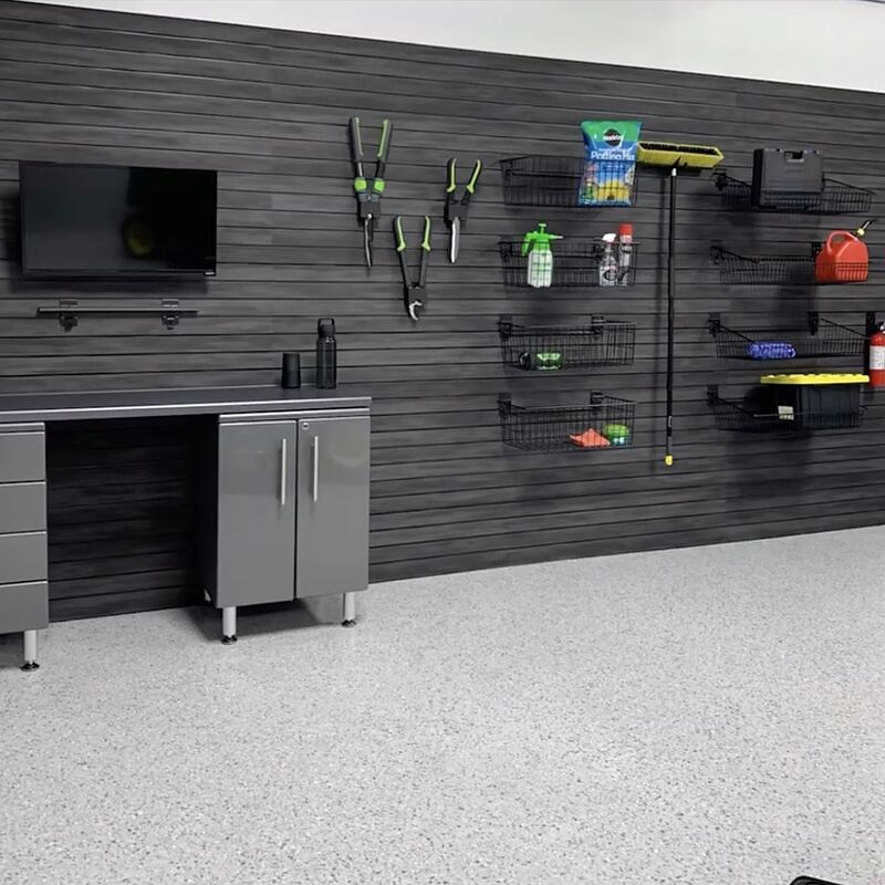 Elite Series isn’t just about looks—it’s a true storage system. Properly installed slatwall holds heavy gear, keeps items organized, and stays clean and low-maintenance in a garage environment.